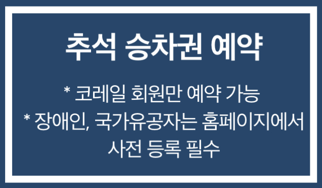 - 명절승차권은 KTX 마일리지, 일반열차 할인쿠폰 적립 대상에서 제외합니다.