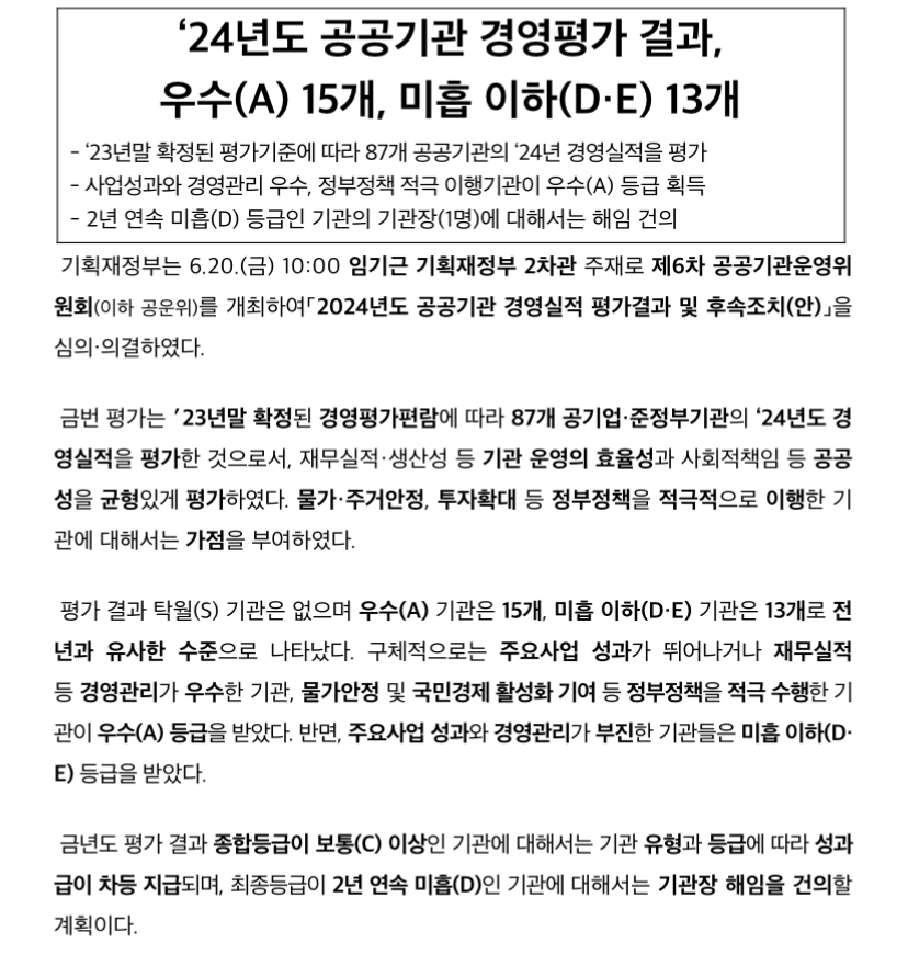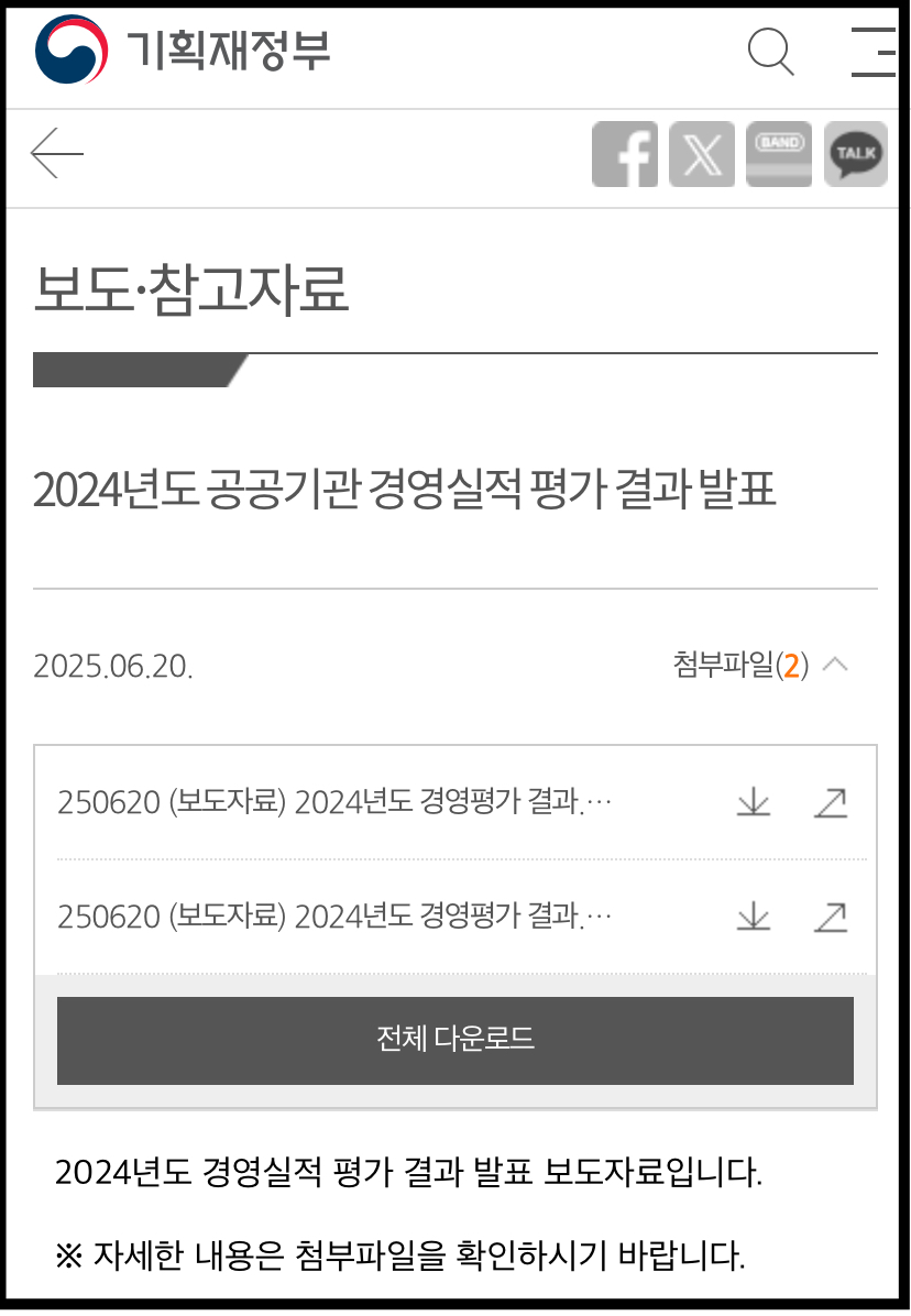 * 기획재정부 공기업 경영평가 결과 발표 다운로드를 확인하세요.