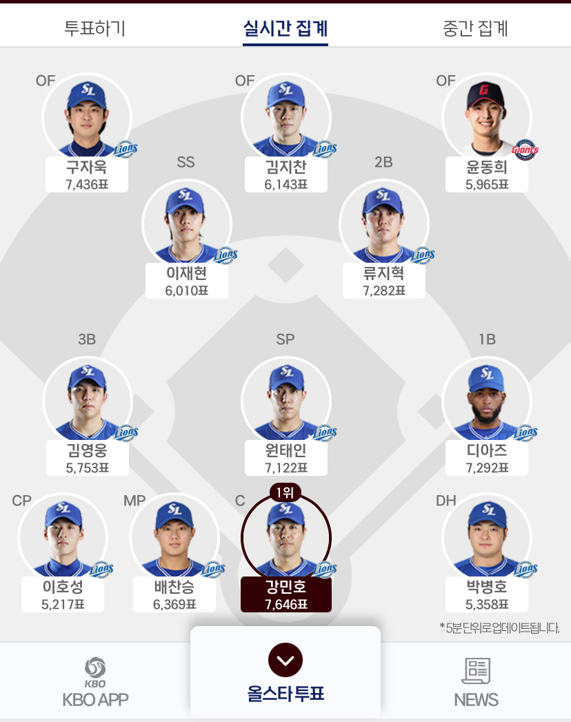 KBO 올스타전 투표의 최종 집계 결과는 이달 중 진행 예정인 선수단 투표에는 30%의 비율을 부여하며 팬 투표 70%와 합산해 최종 집계됩니다.