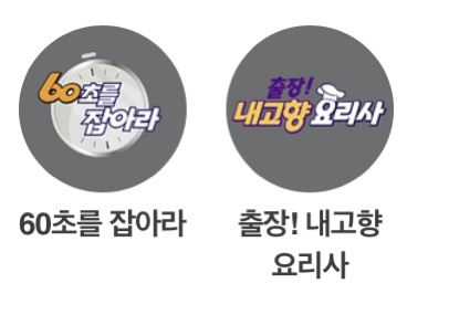 - 출장! 내고향 요리사: (금) 대한민국 최고의 요리사가 고향을 직접 찾아가, 특별한 요리를 선사합니다. 고향의 신선한 식재료에 마음을 듬뿍 넣고, 정성을 더해 만든 요리로 사랑하는 가족, 친구, 이웃에게 빛나는 추억을 선물해 드립니다.