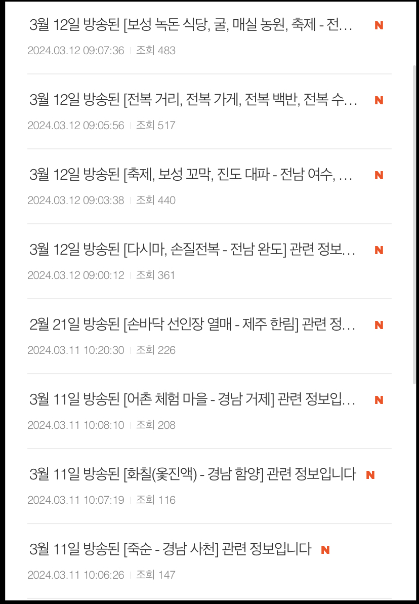 TV속 정보 게시판에는 방송에 나왔던 지역과 식당 등을 자세히 확인하실 수 있습니다.