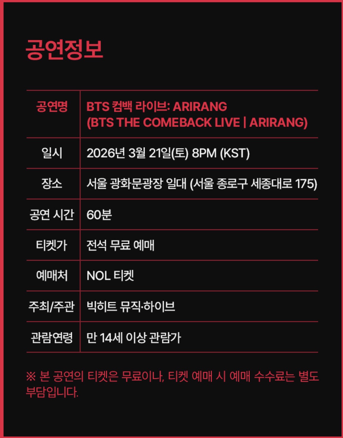 3. BTS 광화문 공연 티켓 예매 주의사항