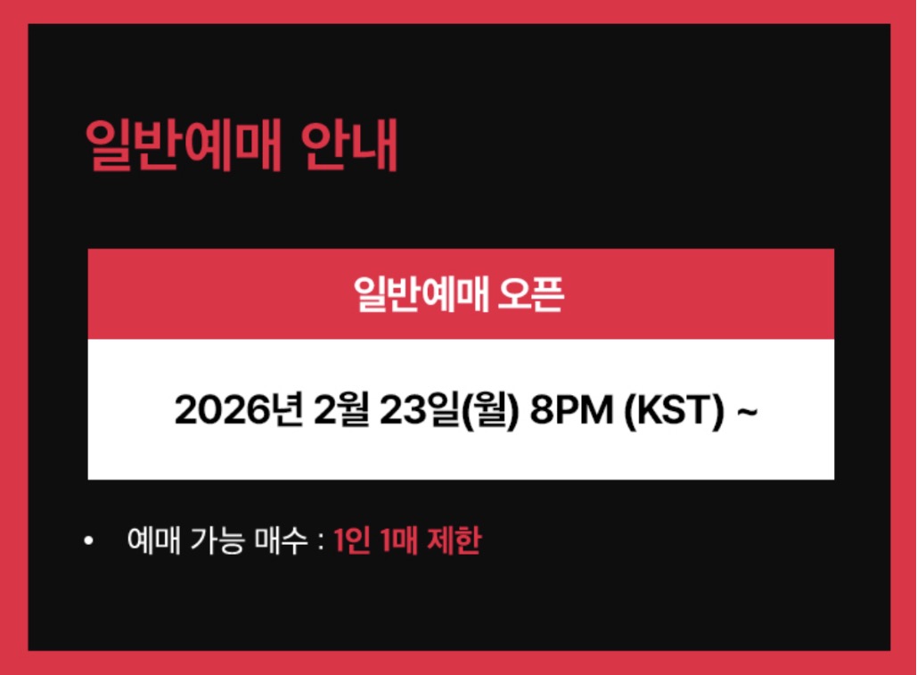 예매는 오는 2월 23일 오후 8시부터 진행되며 1인 1매로 제한됩니다.