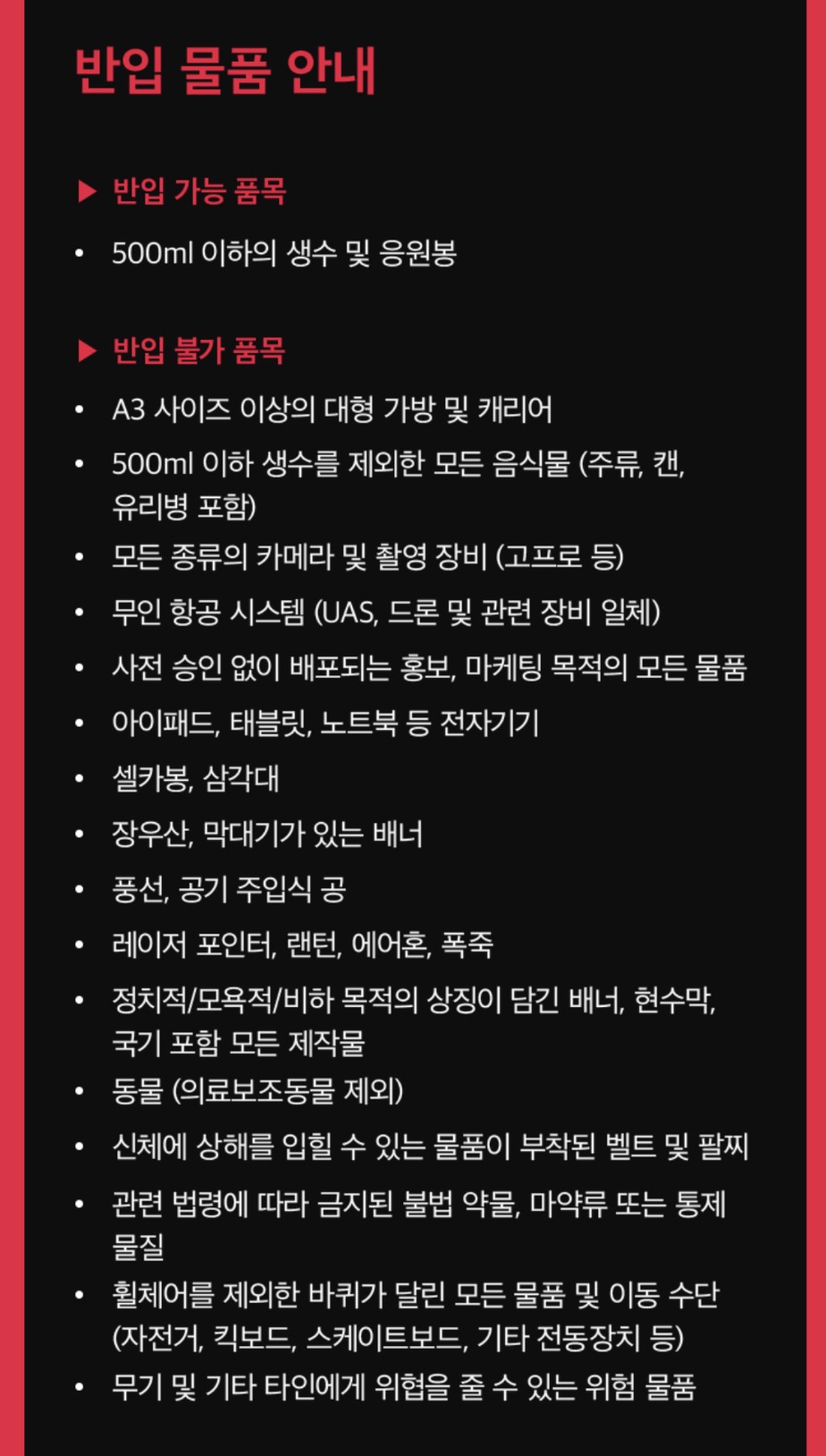 * 공연 당일 관객의 안전 및 질서 유지를 위해 공연장 주변에서 허가 받지 않은 개인 이벤트(물품 배부, 퍼포먼스, 홍보물/홍보차량 등)를 금지합니다.