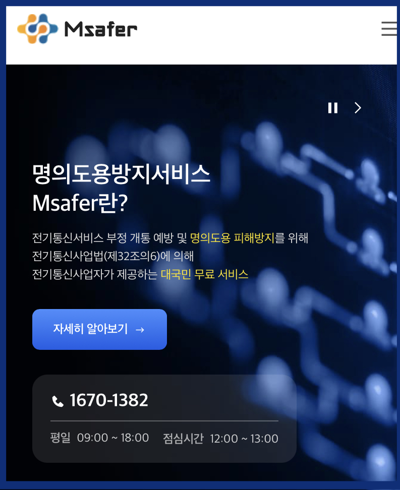 타인이 내 명의를 도용해 이동전화 개통을 사전에 차단하는 엠세이퍼가 있습니다.