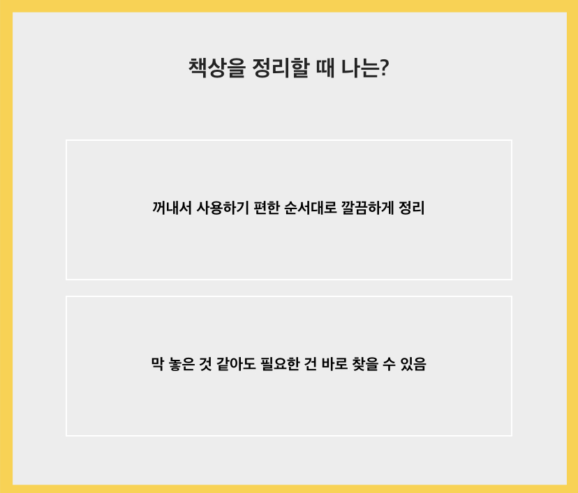 책상을 정리할 때는 꺼내서 사용하기 편한 순서대로 깔끔하게 정리하는 편입니다. 그래야 바쁜 순간에도 빨이 찾을 수 있으니까요.