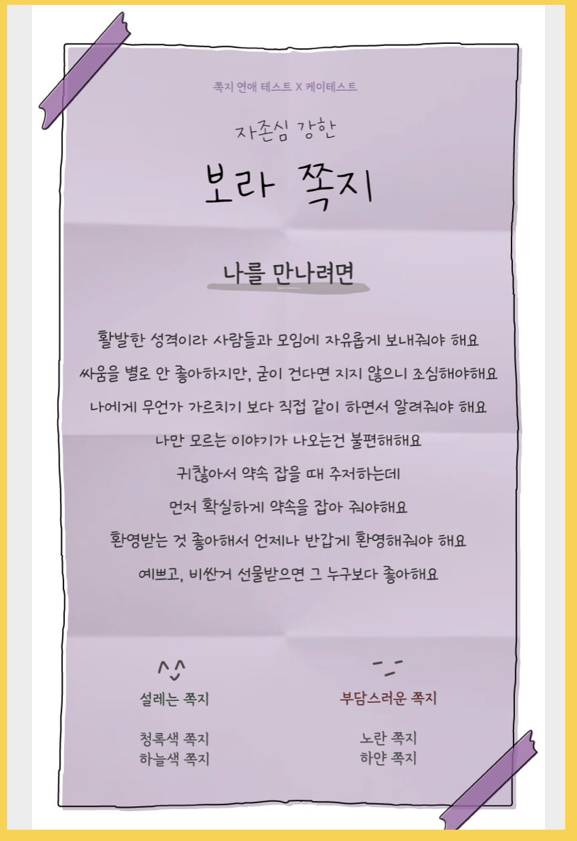 - 보라 쪽지 ESTP: 자존심 강한 보라쪽지